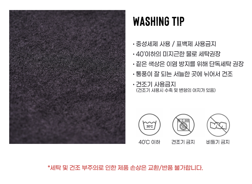 -건조기 사용금지(건조기 이용시 수척, 변형의 여지가 있음)