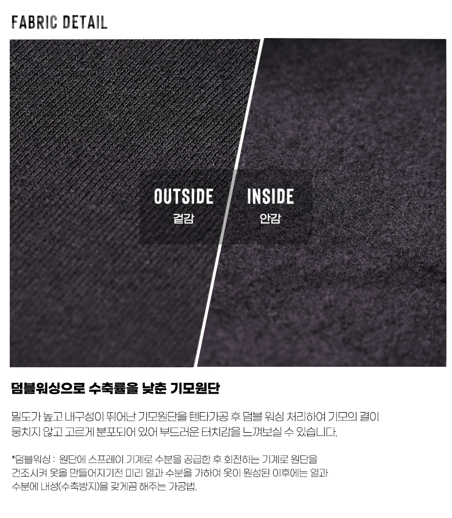 부드러운 촉감, 밀도가 높고 내구성 뛰어난 기모 원단.