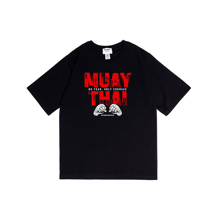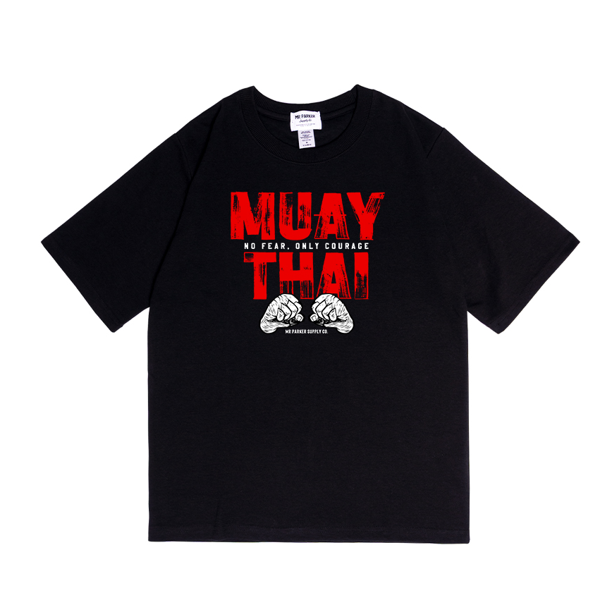 'MUAY THAI - No Fear, Only Courage' 무에타이 루즈핏 티셔츠 (블랙)